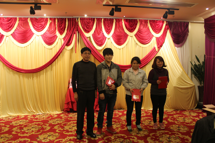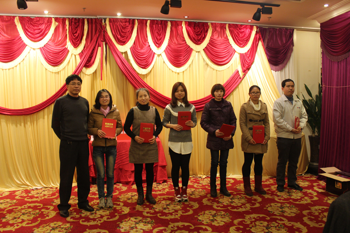 宴会中首先公司总经理为年度优秀员工颁发奖状及奖金,并宣布晚宴正式开始。
