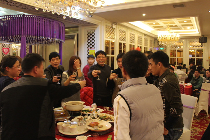 公司领导轮桌敬酒,表达员工一年来辛勤工作的感谢