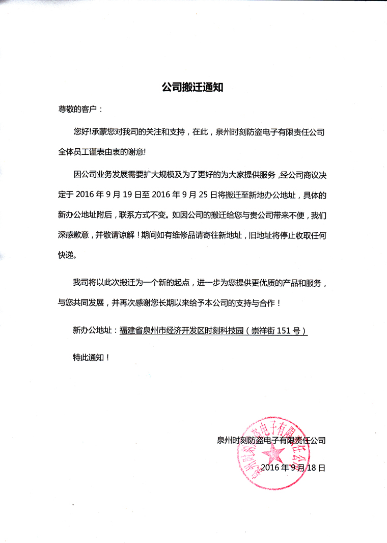 公司搬迁通知