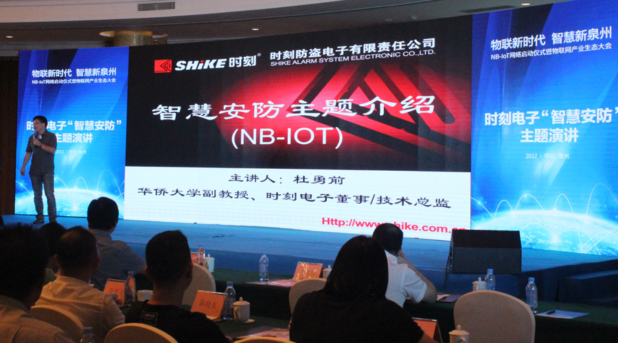 NB-IoT是基于蜂窝移动网络的物联网连接技术,具有广覆盖、大连接、低功耗、低成本、运营商专有频段等优势,适合广泛部署,是实现海量连接、万物互联的一种主要手段,在智慧城市、公共事业、智能制造等领域存在巨大发展空间。泉州时刻防盗电子杜勇前(董事、技术总监、华侨大学副教授)上台做基于NB-IoT的智慧安防主题演讲,并借此契机现场发布发布全球首款NB-IoT智能指纹锁、NB-IoT智能报警器、NB-IoT智能烟雾探测器、燃气探测器、水浸探测器等一系列基于NB-IoT的新品。