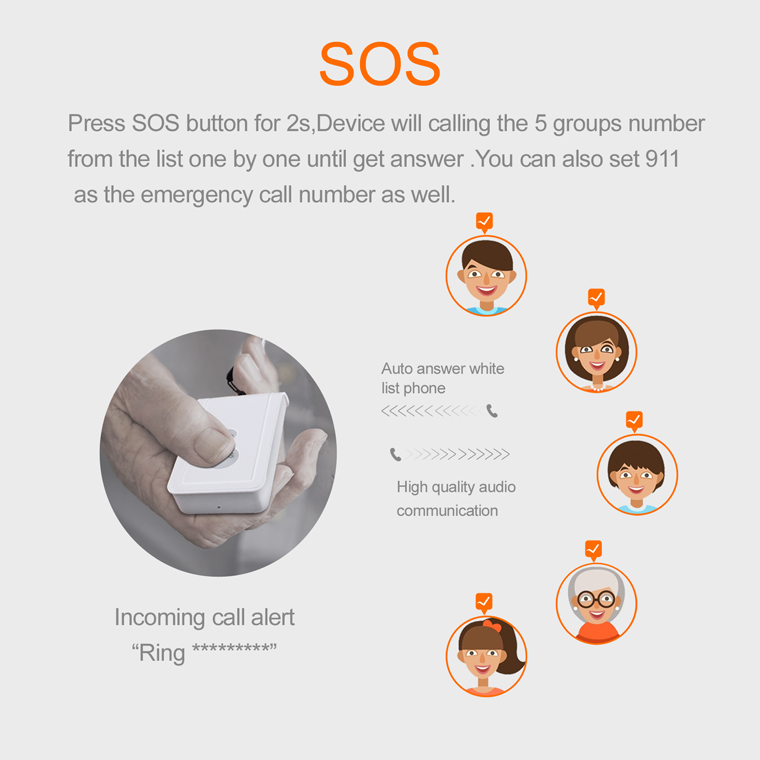 Press this button it will auto dial emergency telephone numbers immediately one by one ,will not stop until someone answer you
