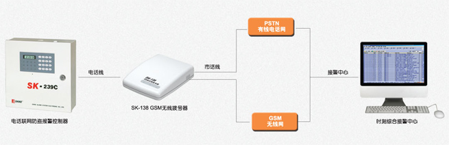 ◆ Can match any brand of user terminal equipment such as alarm panel , telephone , SPC exchanges , and so on . Upgrade the single PSTN network to GSM & PSTN Dual Network