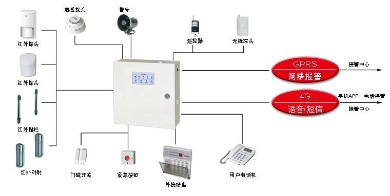 •内置4G全网通模块,可实现由手机模块拨号、4G无线网络报警及发送中文短信息报警;