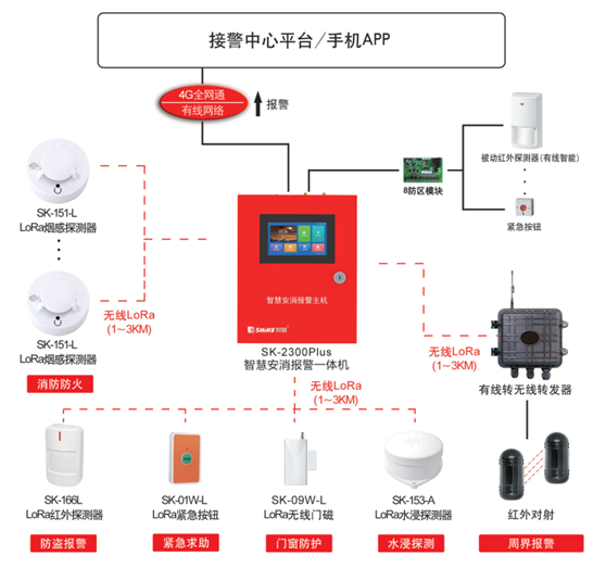●采用4G全网通+有线网络(选配)双通道工作,报警警情传输更加可靠;