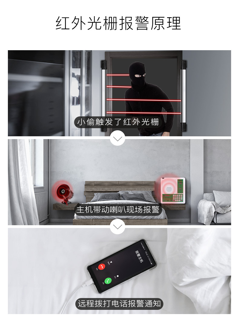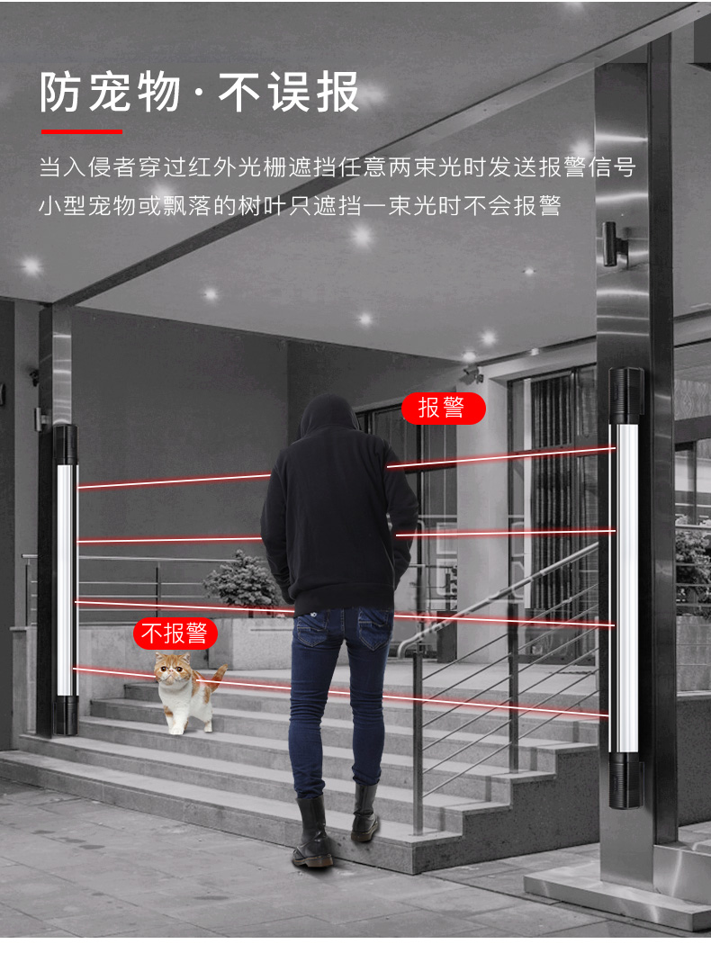• 双束识别功能能有效地防止小动物、飞鸟等引起误报