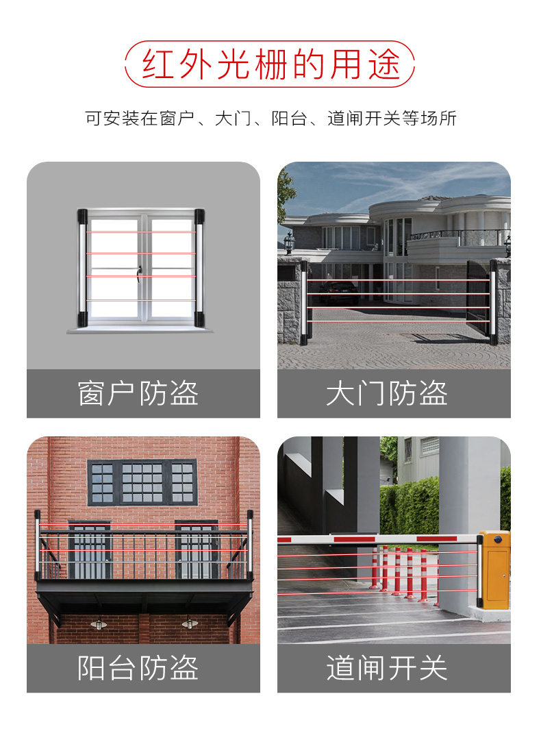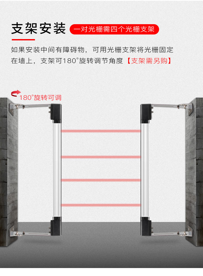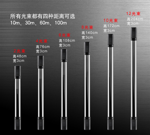 警戒距离 | 10米、30米、60米、100米可选 | 光束数 | 2~12束可选 |