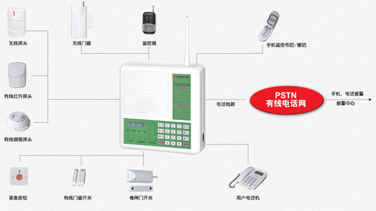 ●电话线传输、固定电话、移动电话人工及联网接警中心接收报警信号